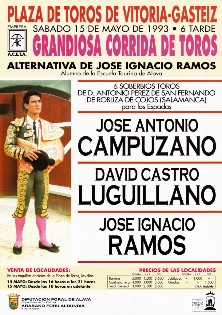Izenburua: Plaza de Toros de Vitoria-Gasteiz [Material gráfico] : grandiosa corrida de toros : alternativa de José Ignacio Ramos : 6 soberbios toros : José Antonio Campuzano, David Castro Luguillano, José Ignacio Ramos