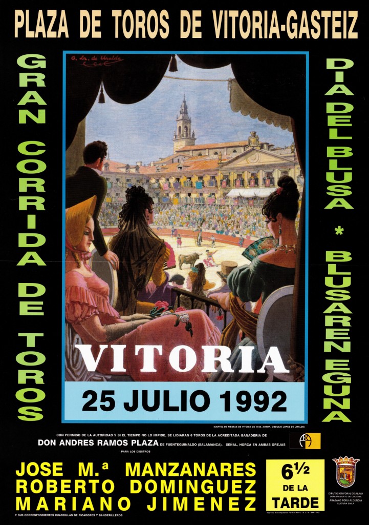 Título: Plaza de Toros de Vitoria-Gasteiz [Material gráfico] : gran corrida de toros 25 julio, día del Blusa-Blusa Eguna : J.M. Manzanares, Roberto Dominguez, Mariano Jiménez...