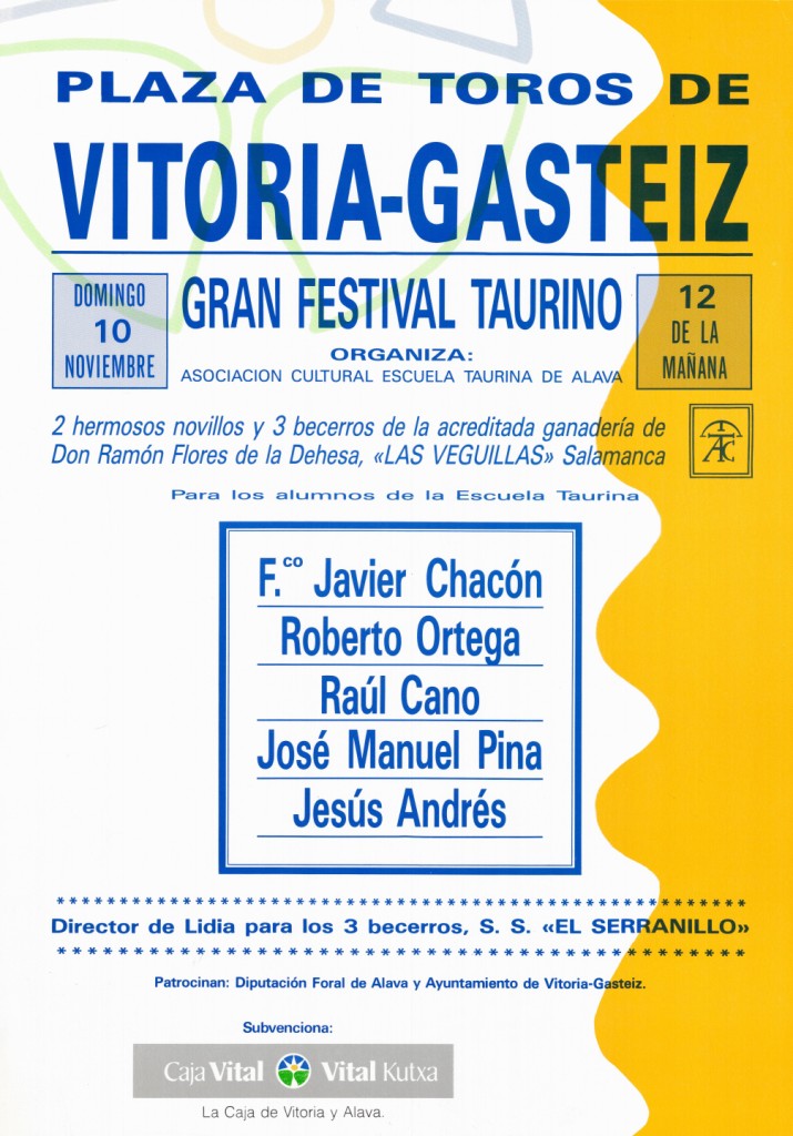 Deskribapena: Diputación. Ayuntamiento. Caja Vital. Ganadería de "las vegillas". Director de lidia "El Serranillo"