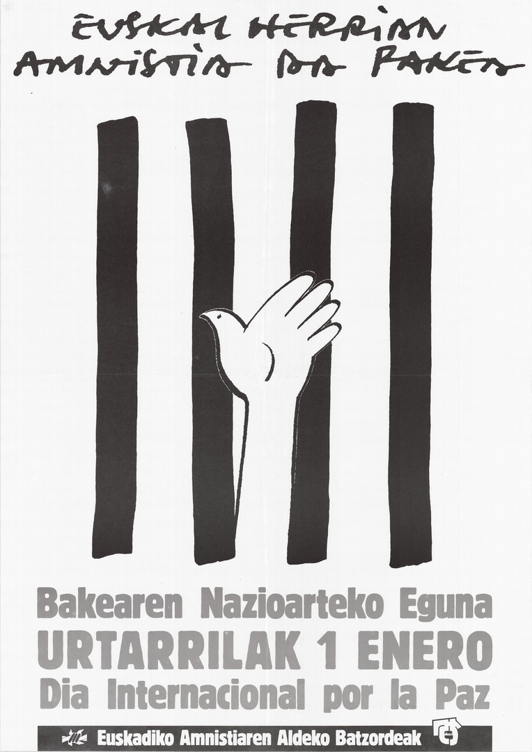Título: Euskal Herrian amnistia da pakea [Material gráfico] : Pakearen Nazioarteko Eguna urtarrilak 1 = 1 enero Día Internacional por la Paz