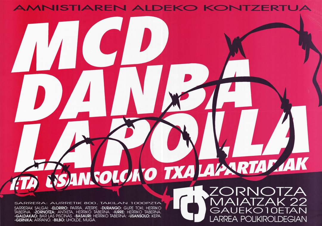 Título: Amnistiaren aldeko kontzertua [Material gráfico] : MCD, Danba, La Polla : eta Usansoloko txalapartariak : Zornotza maiatzak 22