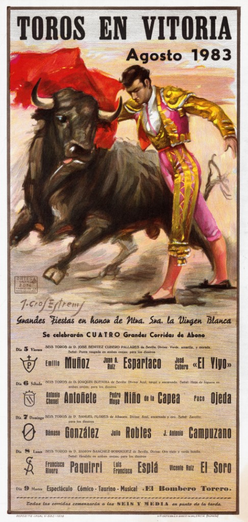Izenburua: Toros en Vitoria [Material gráfico] : agosto 1983 : grandes fiestas en honor de Ntra. Sra. la Virgen Blanca : se celebrarán cuatro grandes corridas de abono