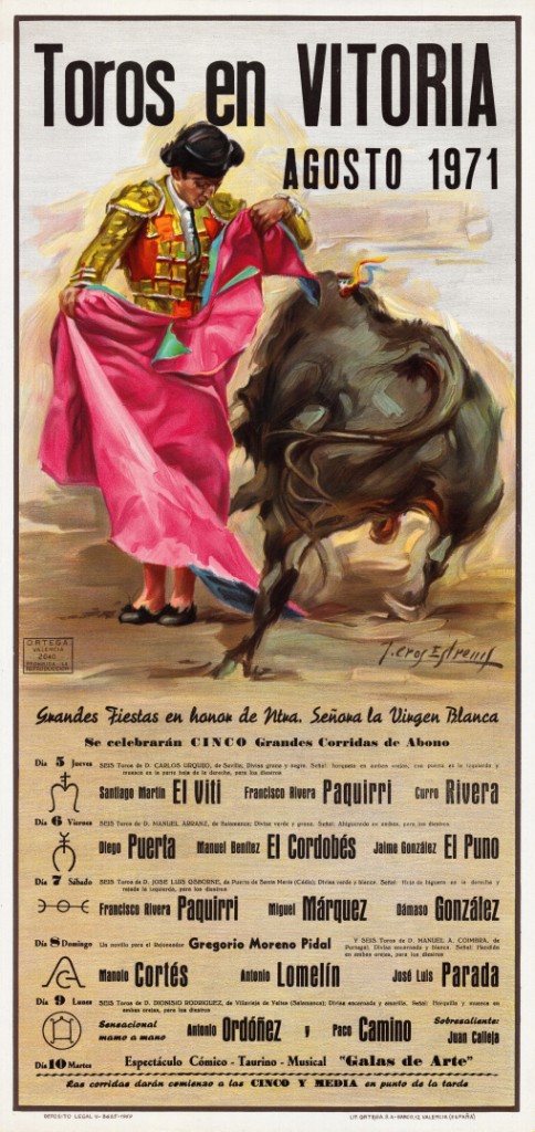Izenburua: Toros en Vitoria [Material gráfico] : agosto 1971 : grandes fiestas en honor de Ntra. Señora la Virgen Blanca : se celebrarán cinco grandes corridas de abono