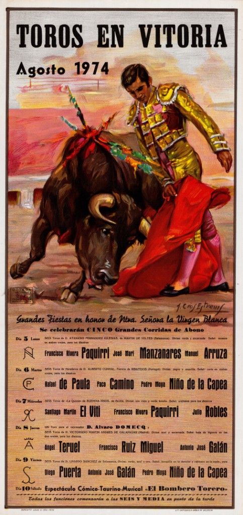 | Izenburua: | Toros en Vitoria [Material gráfico] : agosto 1974 : grandes fiestas en honor de Ntra. Señora la Virgen Blanca : se celebrarán cinco grandes corridas de abono |