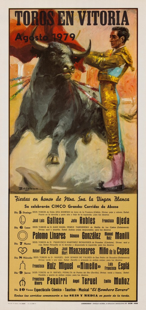 Título: Toros en Vitoria [Material gráfico] : agosto 1979 : fiestas en honor de Ntra. Señora la Virgen Blanca : se celebrarán cinco grandes corridas de abono