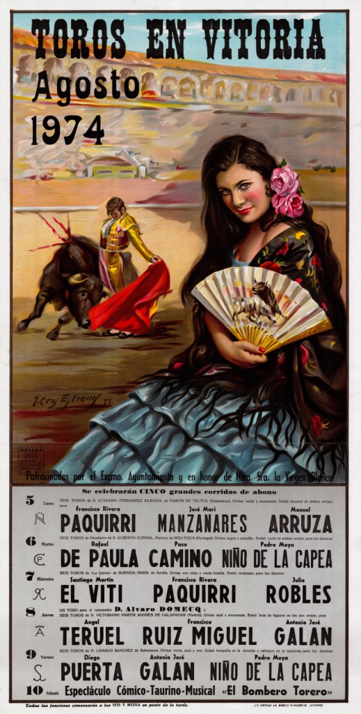 Título: Toros en Vitoria [Material gráfico] : agosto 1974 : patrocinadas por el Excmo. Ayuntamiento y en honor de Ntra. Sra. la Virgen Blanca se celebrarán cinco grandes corridas de abono