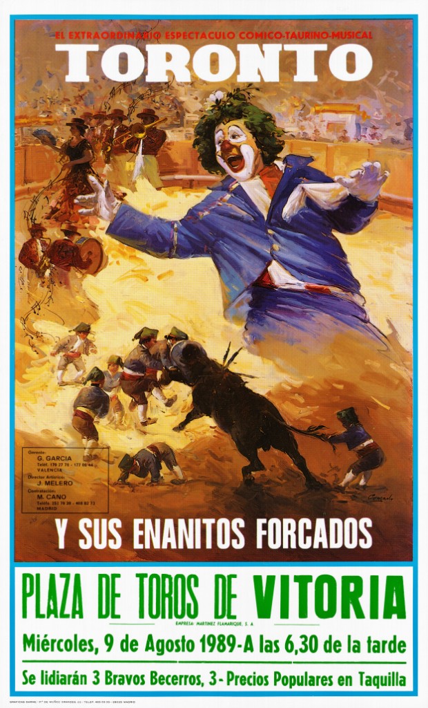 Título: El extraordinario espectáculo cómico-taurino-musical Toronto y sus enanitos forcados [Material gráfico] : Plaza de Toros de Vitoria , 9 agosto 1989 : se lidíarán 3 bravos becerros