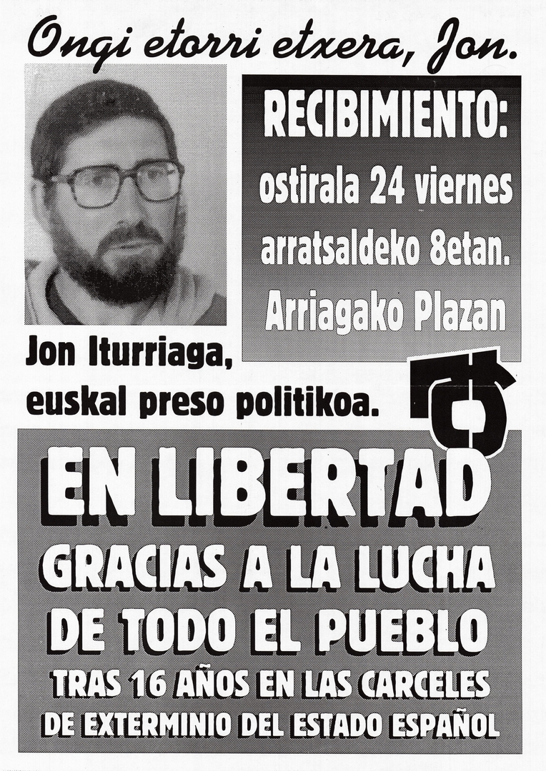 Título: Ongi etorri etxera [Material gráfico] : Jon en libertad (Jon Iturriaga) gracias a la lucha de todo el pueblo tras 16 años en las cárceles de exterminio del Estado español