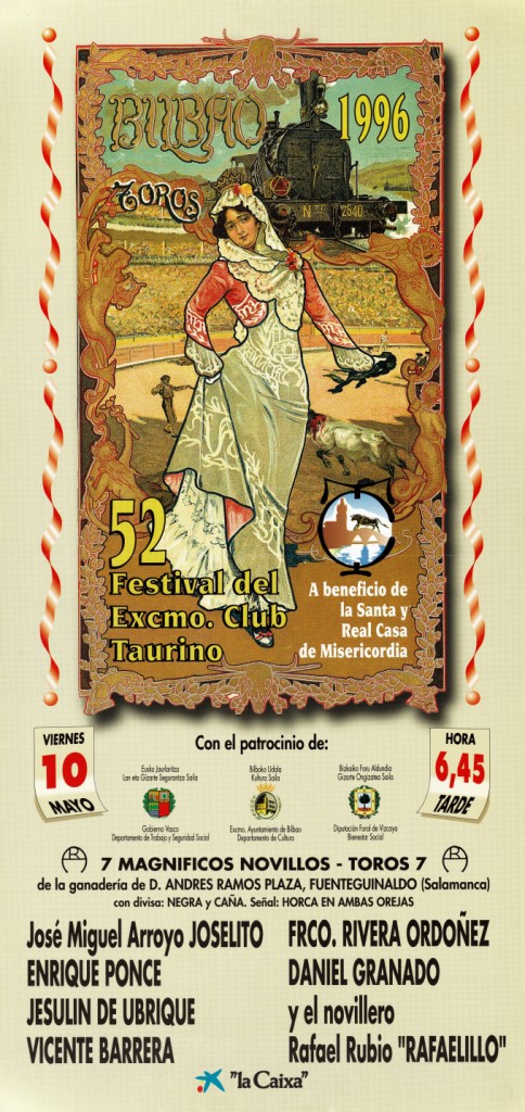 Título: Bilbao 1996 [Material gráfico] : 52 Festival de Excmo. Club Taurino a beneficio de la Santa y Real Casa de Misericordía : 7 magníficos novillos-toros 7