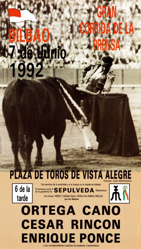 Izenburua: Bilbao 7 de junio 1992 [Material gráfico] : gran corrida de la Prensa : Plaza de Toros de Vista Alegre