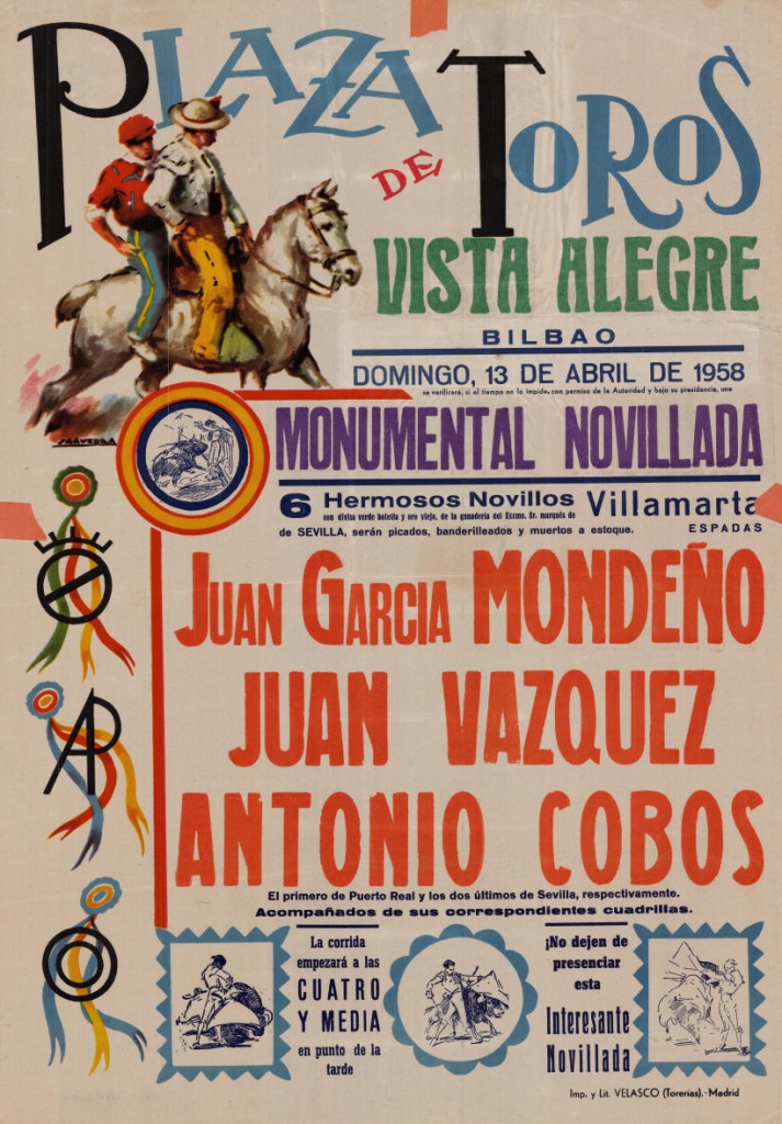 Título: Plaza de Toros Vista Alegre [Material gráfico] : monumental novillada : Mondeño, Juan Vázquez, Antonio Cobos