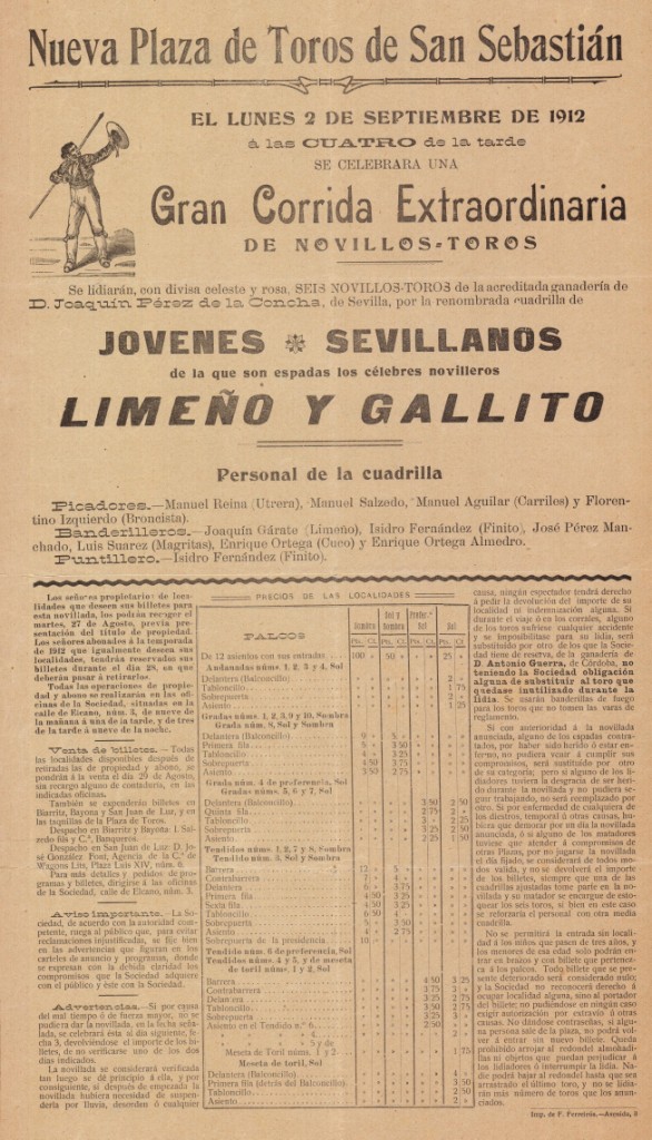Título: Nueva Plaza de Toros de San Sebastián [Material gráfico] : gran corrida extraordinaria, lunes 2 de septiembre : Limeño y Gallito
