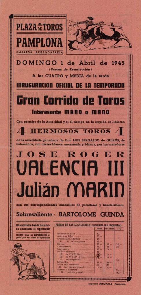 | Título: | Plaza de Toros de Pamplona [Material gráfico] : domingo 1 de abril, inauguración oficial de la temporada... :gran corrida de toros 4 hermosos toros 4 : interesante mano a mano Valencia II, Julián Marín |