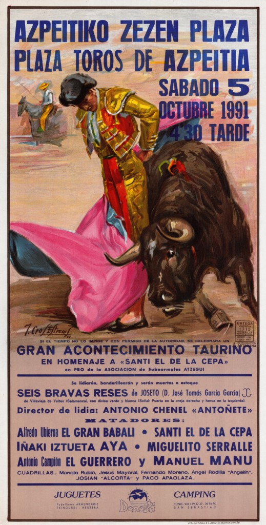 | Título: | Azpeitiko zezen Plaza [Material gráfico] : sábado 5 octubre, gran acontecimiento taurino en homenaje a "Santi el de la Cepa" : en pro de la Asociación de subnormales Atzegi : seis bravas reses : el Gran Babali, Iñaki Iztueta Aya, El Guerrero, Shanti El de La Cepa, Miguelito Serralle, Manuel Manu |