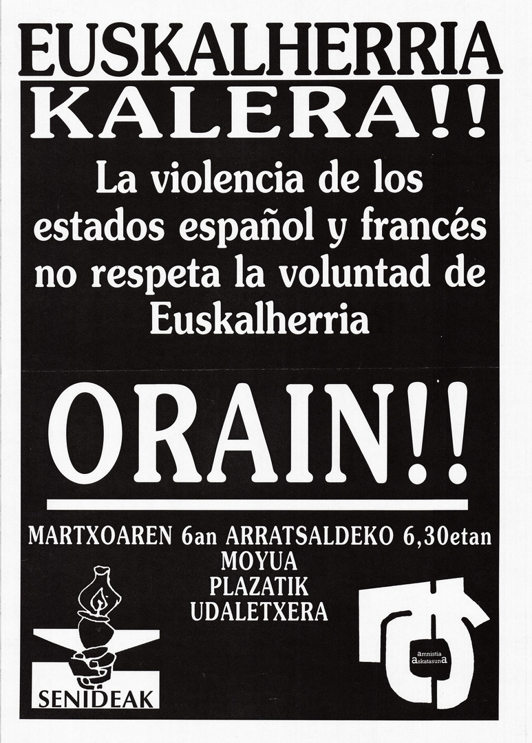 Izenburua: Euskal Herria kalera!! orain!! [Material gráfico] : la violencia de los estados español y francés no respeta la voluntad de Euskalherria : martxoaren 6an Moyua Plazatik Udaletxera