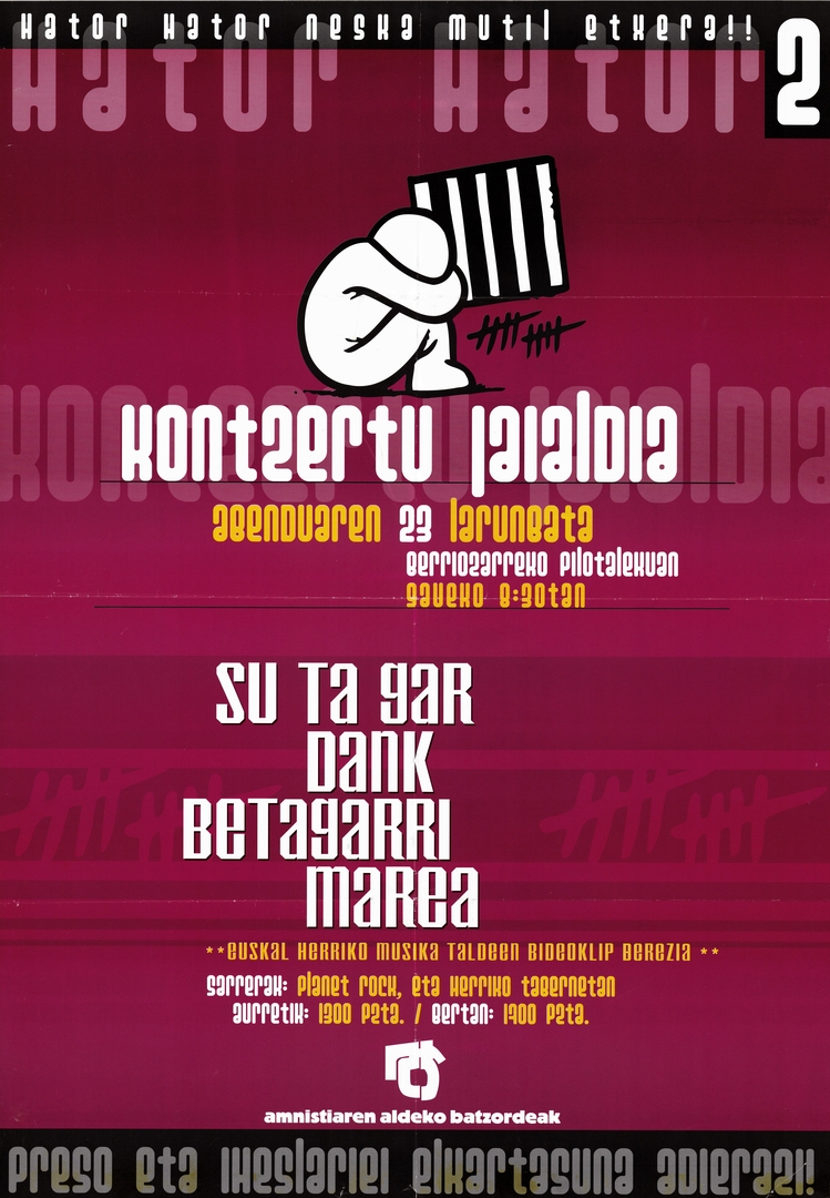 Izenburua: Kontzertu jaialdia, abenduaren 23 larunbata Berriozarreko pilotalekuan, gaueko 8:30etan [Material gráfico] : hator hator neska mutil etxera : preso eta iheslariei elkartasuna adierazi!