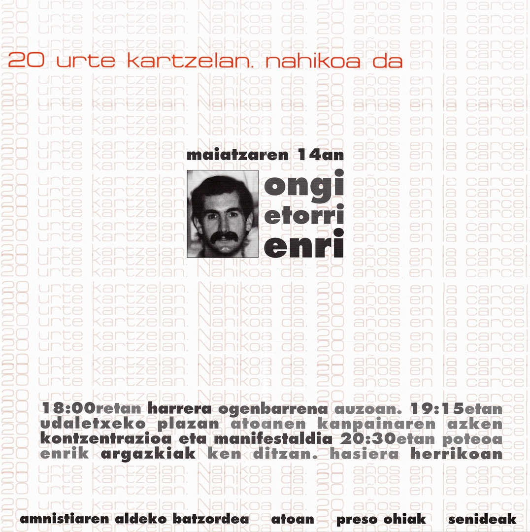 Título: 20 urte kartzelan nahikoa da! [Material gráfico] : maiatzaren 14an ongi etorri Enri