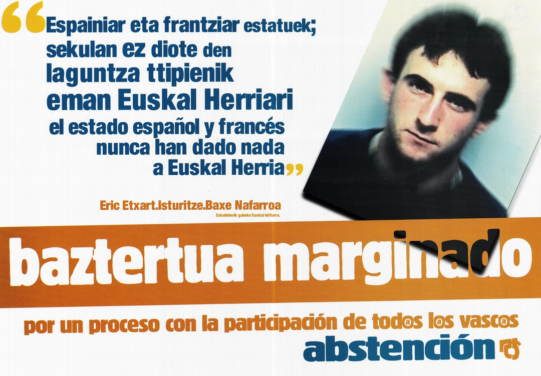 Título: Eric Etxart Isturitze Baxe Nafarroa baztertua-marginado [Material gráfico] : por un proceso con la participación de todos los vascos : abstención