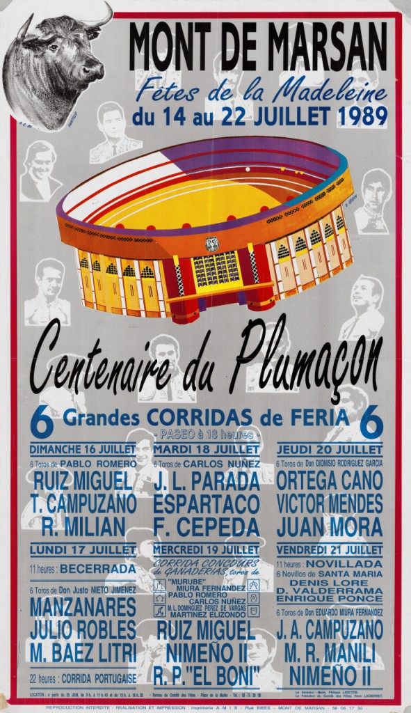 | Título: | Mont de Marsan..., Fêtes de la Madeleine..., & 6 grandes corridas de feria [Material gráfico] : R. Miguel, T. Campuzano , R. Milian, J.L. Parada, Espartaco, F. Cepeda, O. Cano, V. Mendes, J. Mora, Manzanares, J. Robles, Litri, Nimeño II, El Boni, M.R. Manili |
