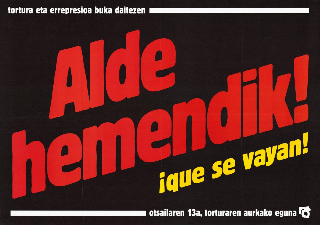 Título: Tortura eta errepresioa buka daitezen [Material gráafico] : alde hemendik! = ¡que se vayan! : otsailaren 13a, torturaren aurkako eguna