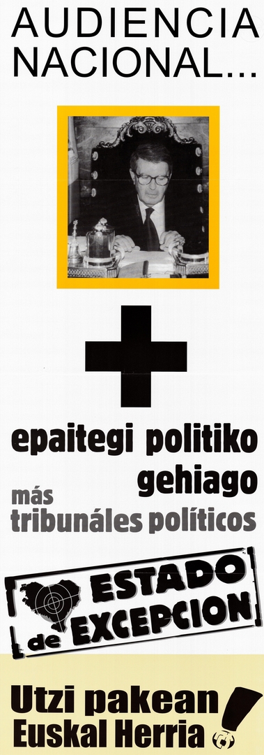 Título: Audiencia Nacional + epaitegi politiko gehiago = más tribunales políticos [Material gráfico] : estado de excepción : utzi pakean Euskal Herria!