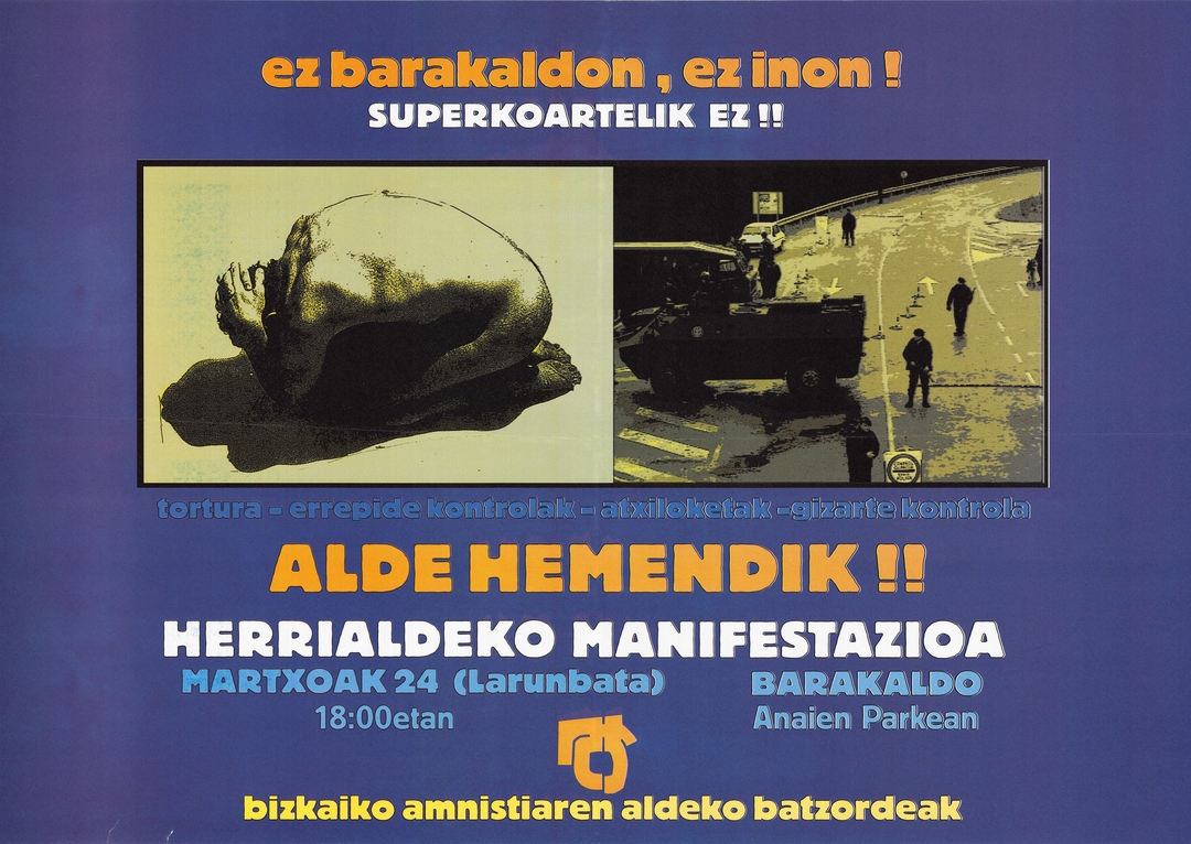 Título: Ez Barakaldon, ez inon! [Material gráfico] : superkoartelik ez!! : alde hemendik!! : herrialdeko manifestazioa martxoak 24 (larunbata) Barakaldo 18:00etan Anaien Parkea