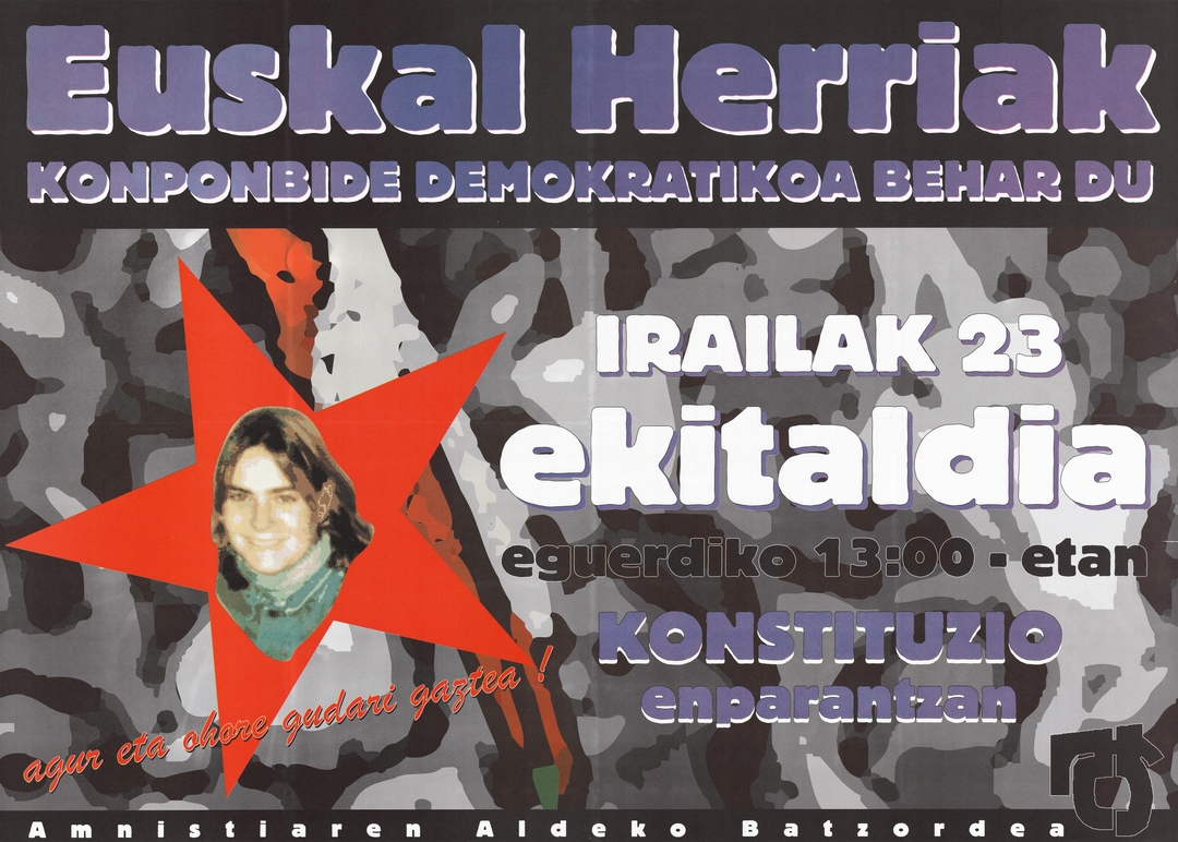Título: Euskal Herriak konponbide demokratikoa behar du [Material gráfico] : Konstituzio Enparantzan agur eta ohore gudari gaztea!