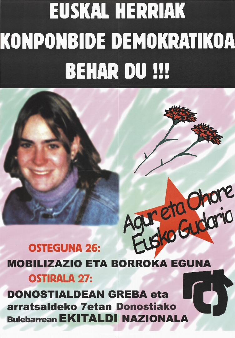 | Título: | Euskal Herriak konponbide demokratikoa behar du!!! [Material gráfico] : agur eta ohore eusko gudaria : osteguna 26, mobilizazio eta borroka eguna : ostirala 27, Donostialdean greba eta arratsaldeko 7etan Donostiako Bulebarrean ekitaldi nazionala |