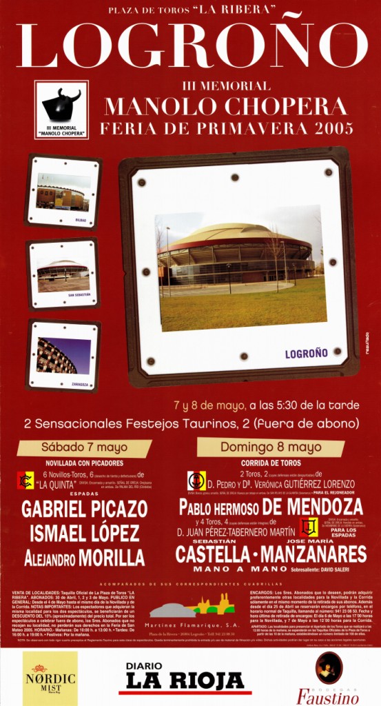 Título: Plaza de Toros "La Ribera" Logroño [Material gráfico] : III Memorial Manolo Chopera : Feria de Primavera 2005 : 2 sensacionales festejos taurinos, 2 (fuera de abono)