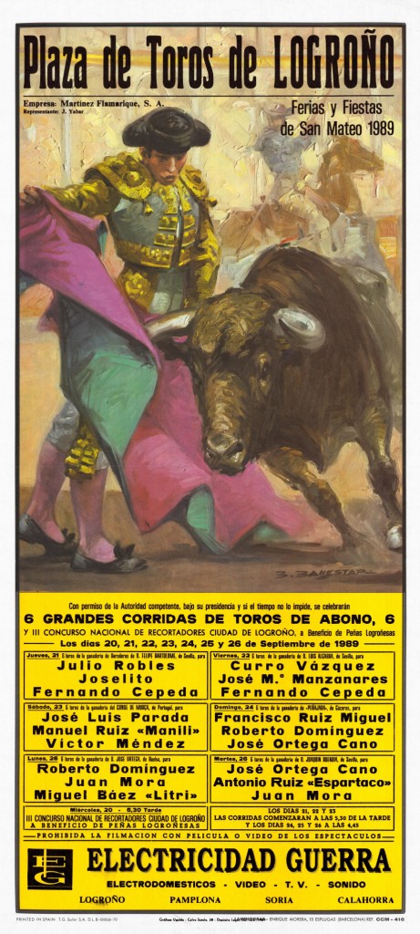 | Izenburua: | Plaza de Toros de Logroño [Material gráfico] : ferias y fiestas de San Mateo 1989 : 6 grandes corridas de toros de abono y III Concurso Nacional de Recortadores Ciudad de Logroño a beneficio de peñas logroñesas |