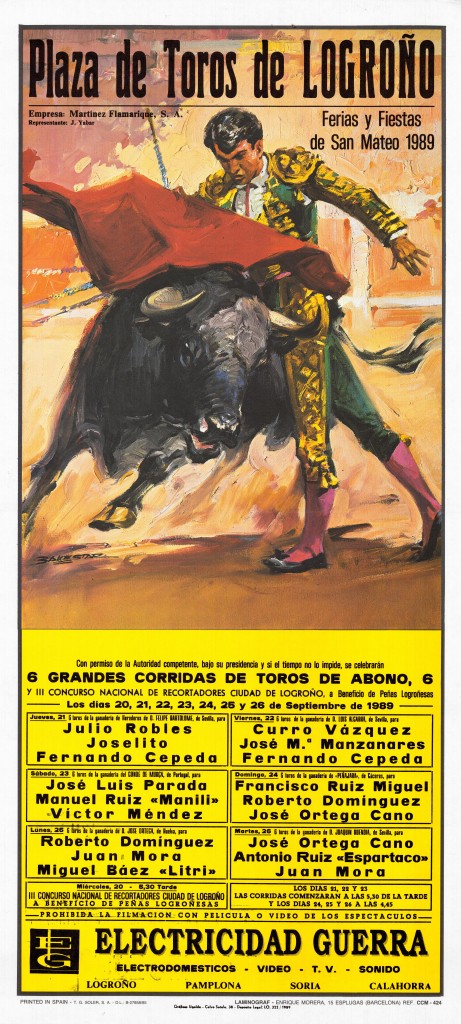 Título: Plaza de Toros de Logroño [Material gráfico] : ferias y fiestas de San Mateo 1989 : 6 grandes corridas de toros de abono y III Concurso Nacional de Recortadores Ciudad de Logroño a beneficio de peñas logroñesas