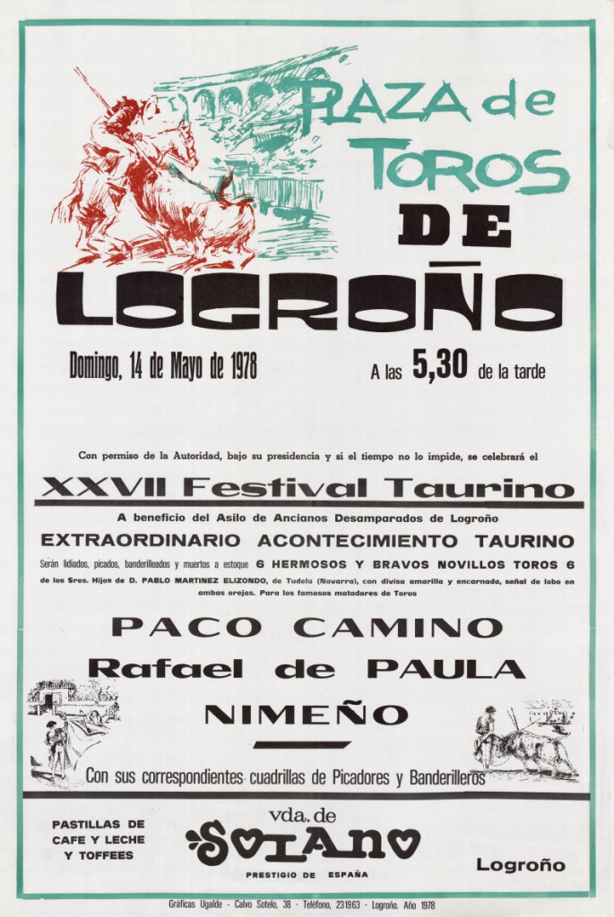 Izenburua: Plaza de Toros de Logroño [Material gráfico] : XXVII Festival Taurino a beneficio del Asilo de Ancianos Desamparados de Logroño : extraordinario acontecimiento taurino