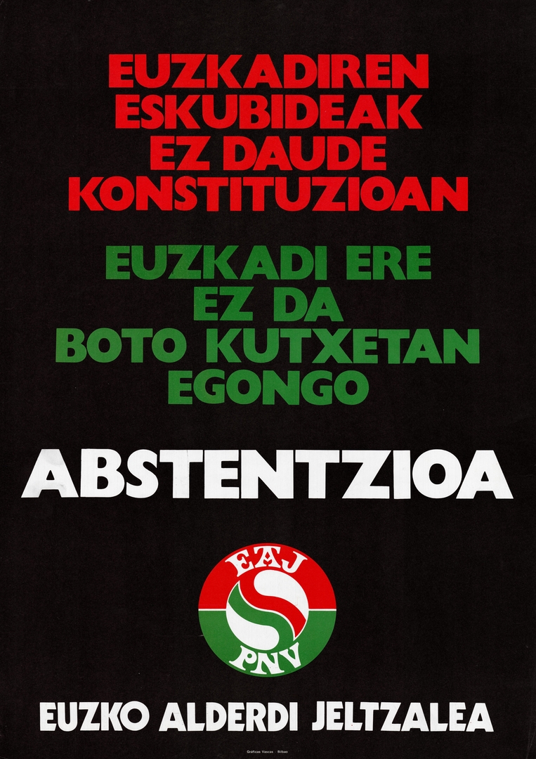 Título: Euzkadiren eskubideak ez daude Konstituzioan [Material gráfico] : Euzkadi ere ez da boto kutxetan egongo : abstentzioa