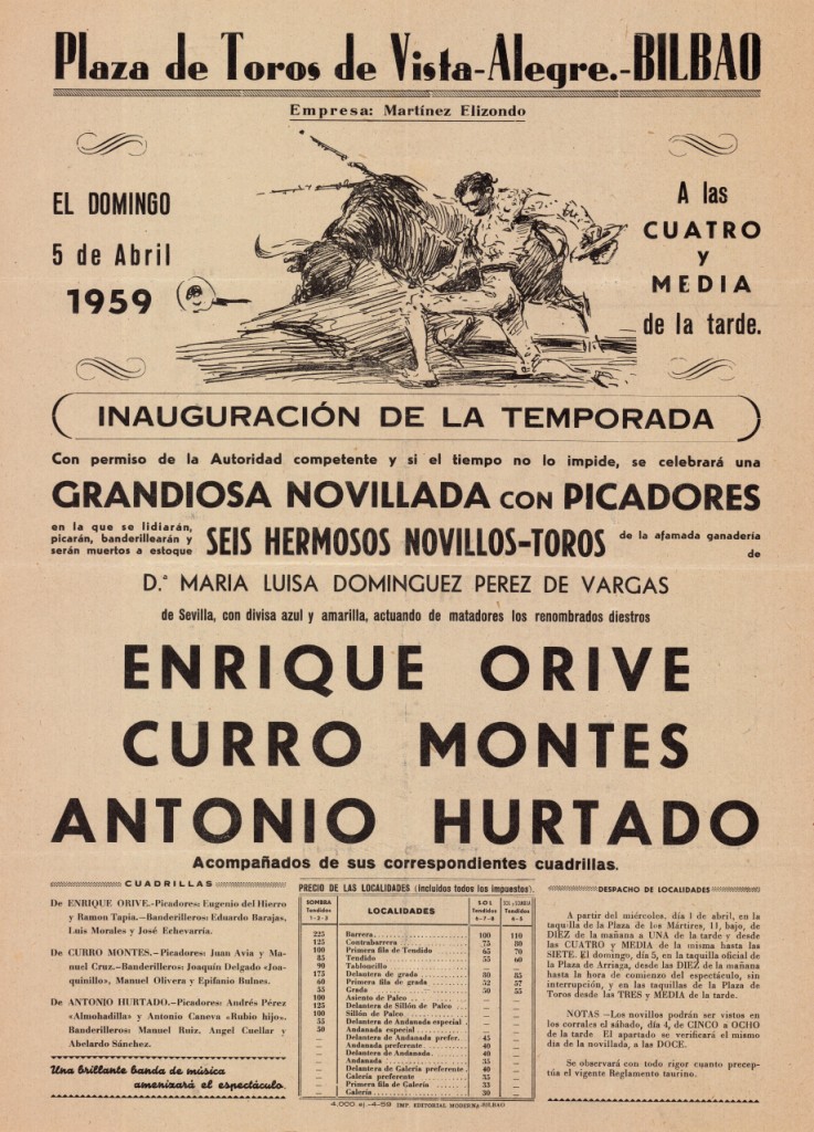 | Título: | Plaza de Toros de Vista-Alegre Bilbao [Material gráfico] : inauguración de la temporada, grandiosa novillada con picadores : 6 hermosos novillos-toros |