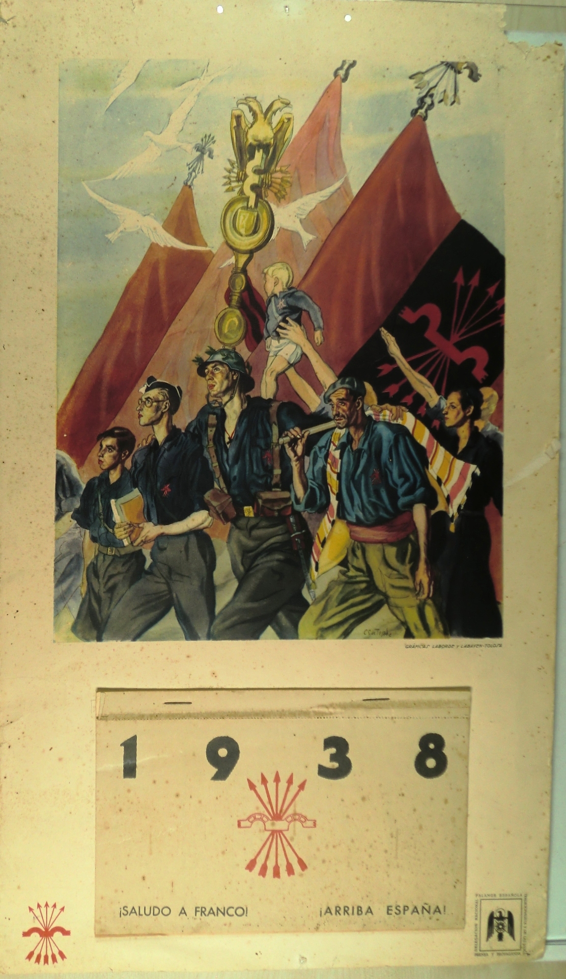 Deskribapena: Calendario del año 1938 con dibujo de falangistas