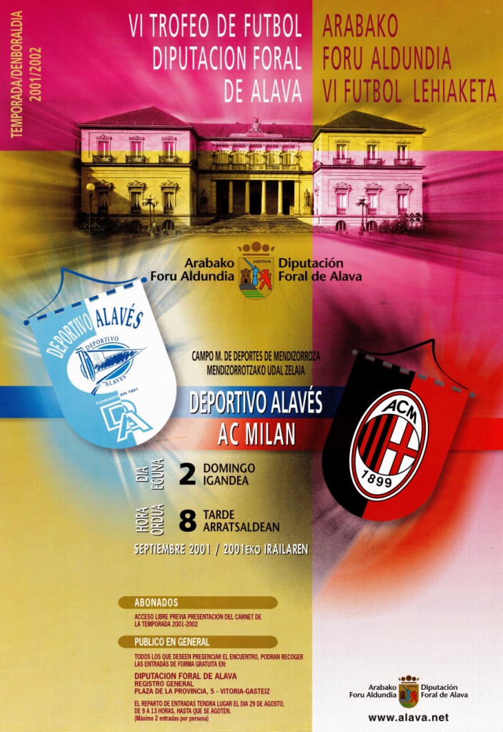 | Otros títulos: | Sexto Trofeo de Fútbol Diputación Foral de Álava : Deportivo Alavés-AC Milan Arabako Foru Aldundia VI Futbol Lehiaketa : Deportivo Alavés-AC Milan |