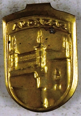 Resumen: Insignia de colaboración social. En metal. Grabado a troquel lleva una edificación sobremontada con la palabra Alcazar (probablemente el de Toledo). Del Auxilio Social.