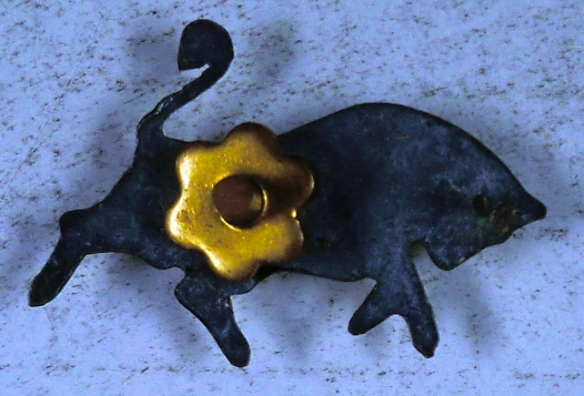 Description: Pin italiano de toro rampante, del escudo de Turín. ¿Insignia de unidad del Corpo Truppe Volontarie?