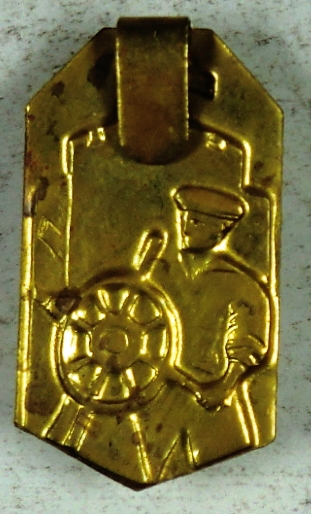 Resumen: Insignia en metal del Auxilio Social con marinero al timón