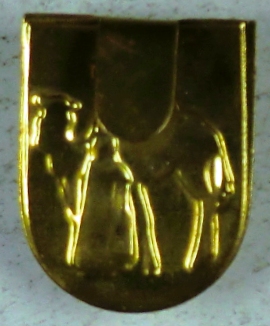 Resumen: Insignia en metal del Auxilio Social con dromedario.