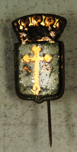 Resumen: Insignia de alfiler con el escudo pintado del reino de Asturias.