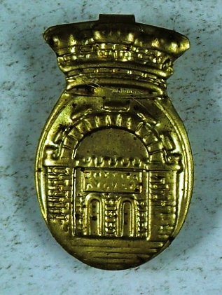 Deskribapena: Insignia del Auxilio Social en metal dorado, con pestaña para poner en la solapa. Lleva grabado a troquel: Emerita Augusta. Hacia 1940.
