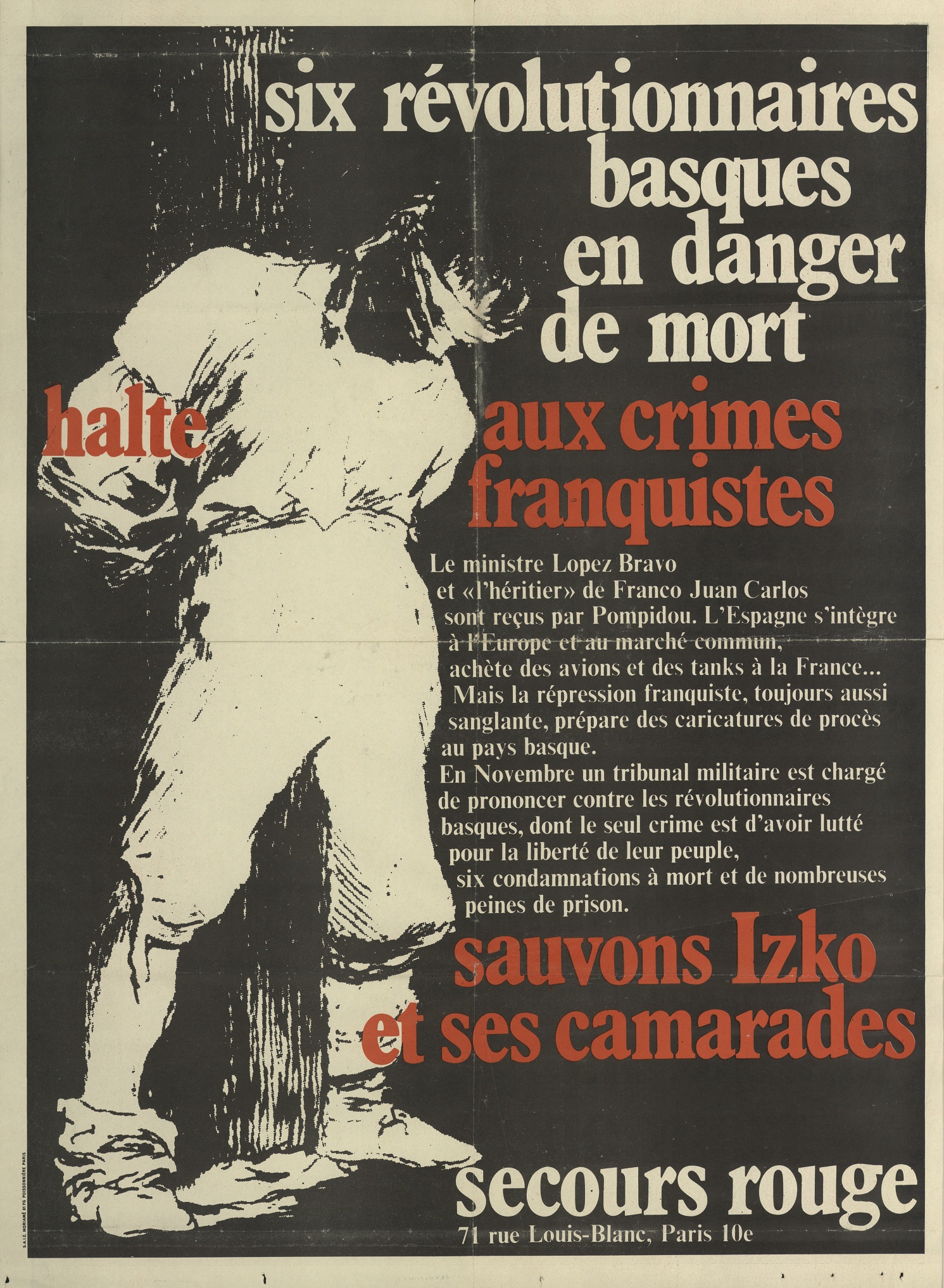 | Título: | Halte aux crimes franquistes [Material gráfico] : sauvons Izko et ses camarades : six révolutionnaires basques en danger de mort : le ministre Lopez Bravo ... : Secours Rouge 71 rue Louis-Blanc, Paris 10e. |