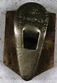 | Resumen: | Insignia de rango de "camisa negra" de la milicia de voluntarios de seguridad nacional para usar en ropa civil. La insignia tiene forma pentagonal con el vértice hacia abajo, en el centro la insignia del estado, la Milicia y un cartucho con las palabras "Milizia v.s. Nazionale". Está hecho de metal plateado y esmalte negro. En la parte posterior la marca del fabricante "Picchiani e Barlacchi" de Florencia. |