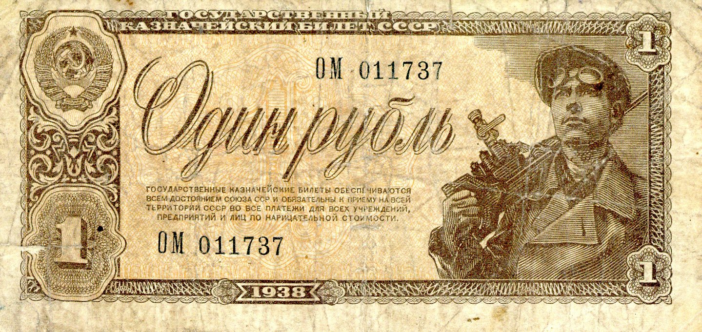 Resumen: Billete de 1 (un) rublo emitido en 1938 en la Unión Soviética. Nº serie: 011737.