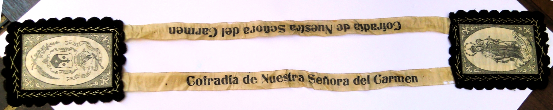 Deskribapena: Escapulario en tela de la Cofrafía de Nuestra Señora del Carmen.