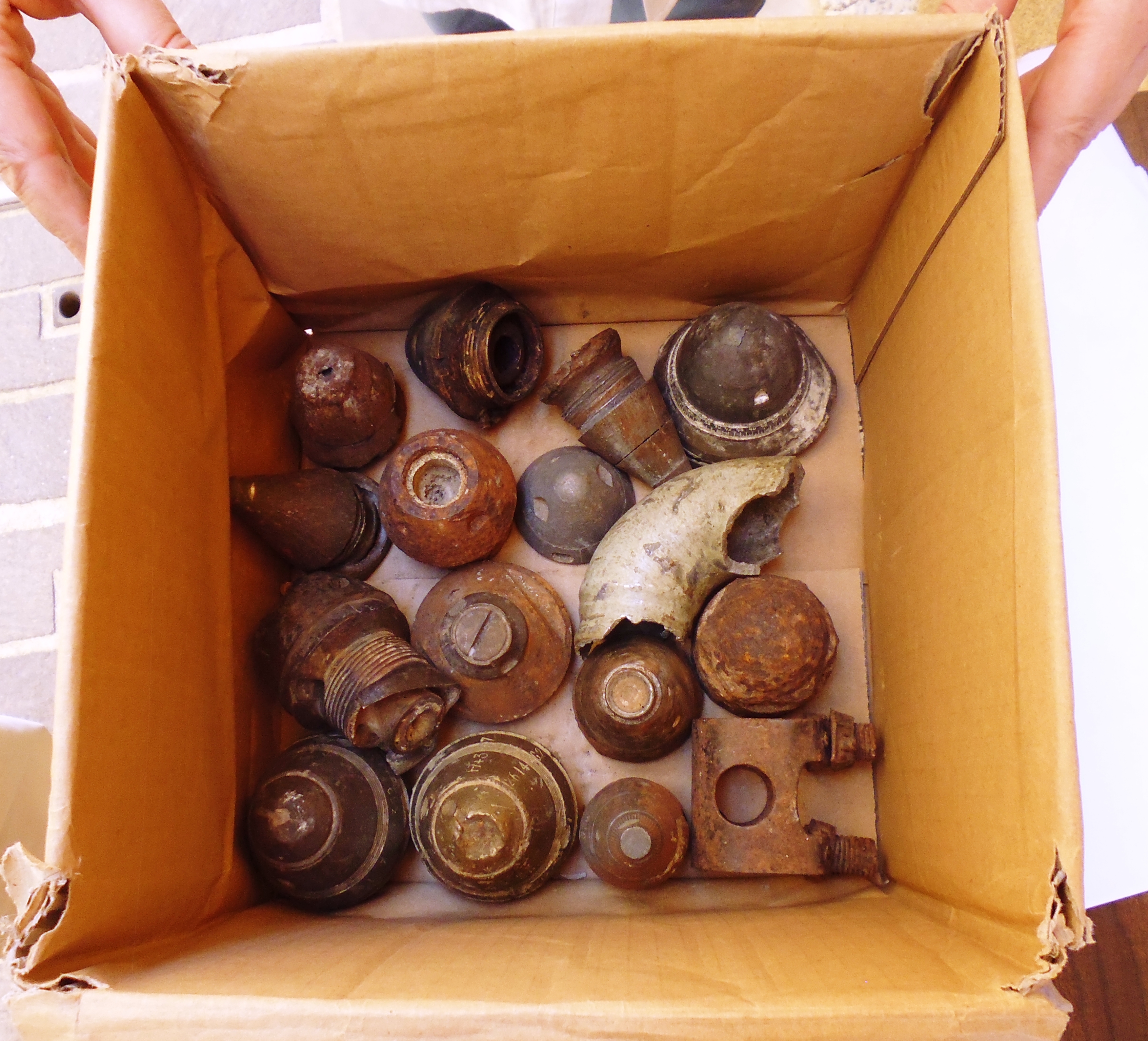 Izenburua: Espoletas de proyectiles y fragmento de avión