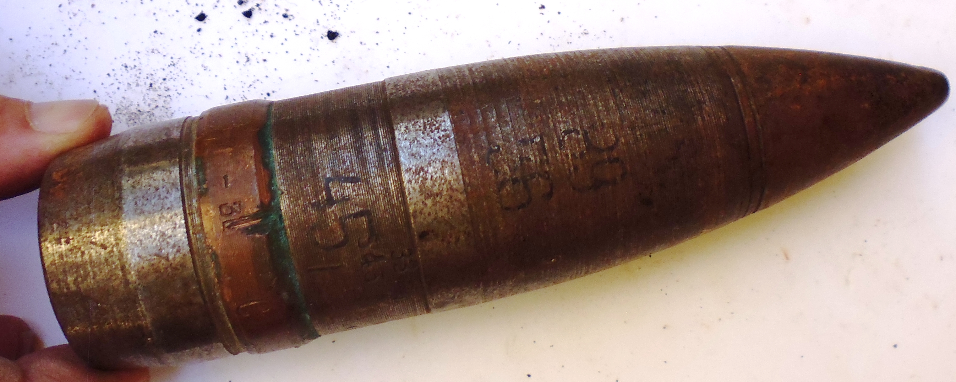 Deskribapena: Proyectil soviético incendiario de blindado BA-6 de 45 mm. En la ficha anotación manuscrita: "Granada rusa incendiaria del 4 o 4 1/2 de pólvora negra. Luco (Álava) 16.XII.36. Poryectil de cañón del 4 1/2 de tanque ruso".
