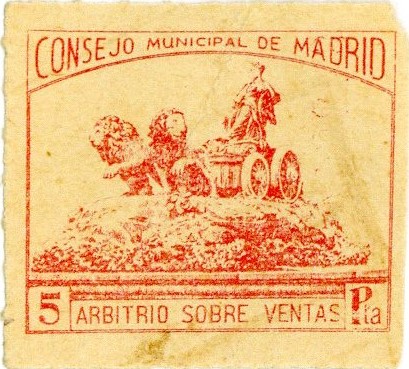 Título: Sello de 5 pta. : Consejo Municipal de Madrid : arbitrio sobre ventas