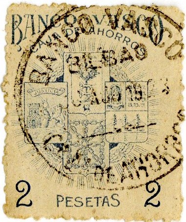 Título: Sello de 2 pesetas : Banco Vasco caja de ahorros